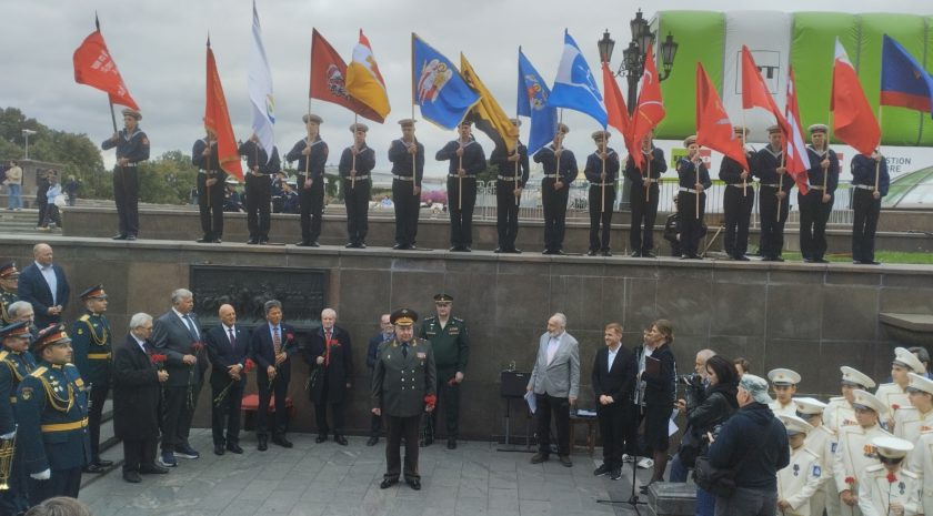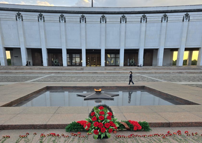 Торжественная церемония возложения цветов прошла у горельефа, открытого 3 сентября 2023 года на Манежной площади — к годовщине Победы над милитаристской Японией и окончания Второй мировой войны.