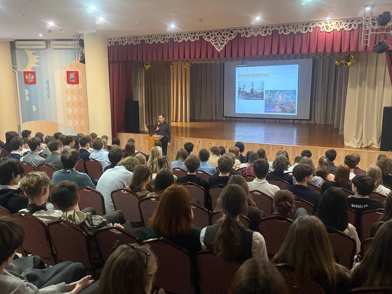 В День полного освобождения Ленинграда от фашистской блокады автор и руководитель проекта ‘Почётный караул’ провёл урок Мужества для учеников 10-х и 11-х классов во втором корпусе ГБОУ ‘Школа № 2104 на Таганке’.