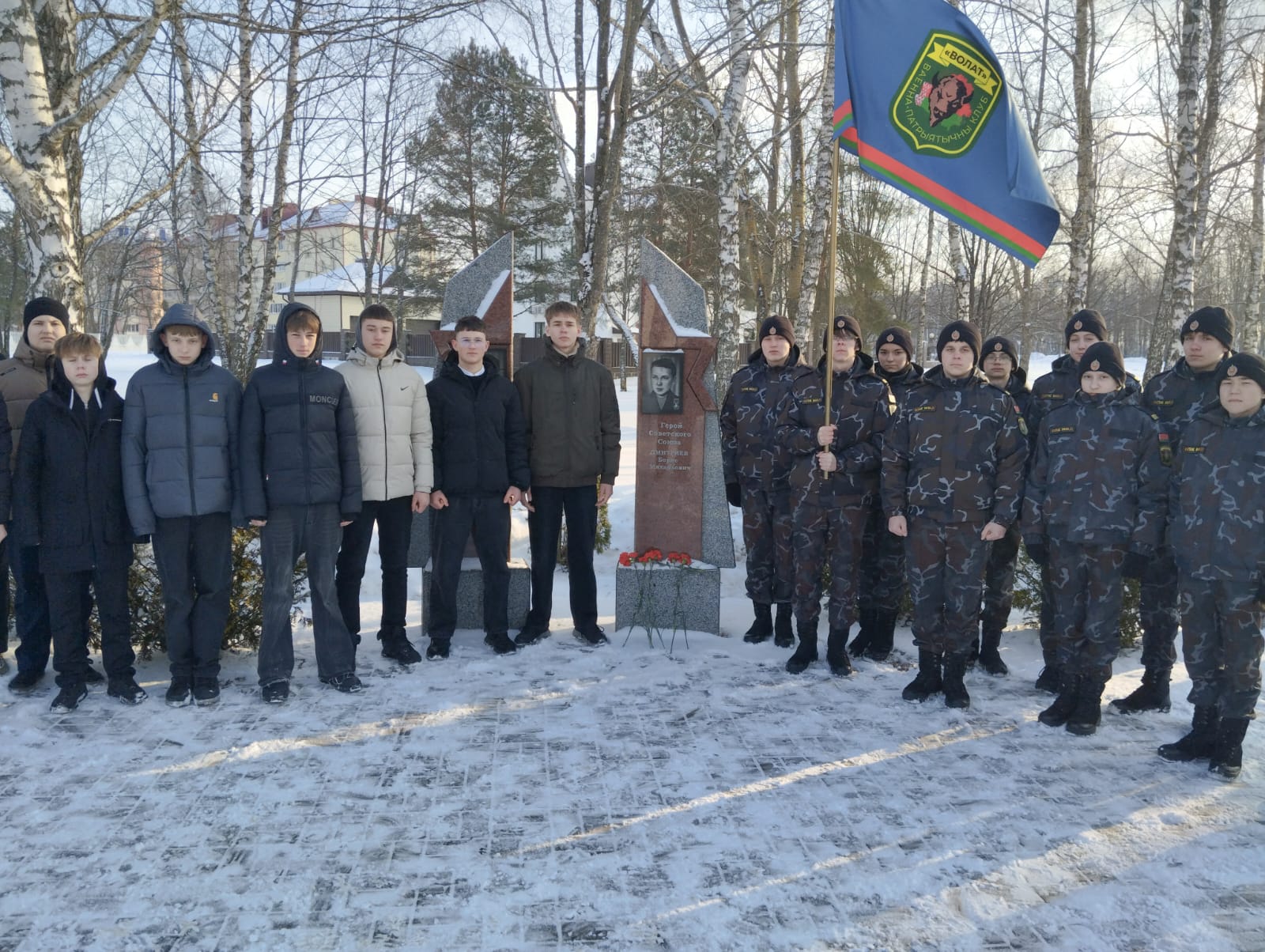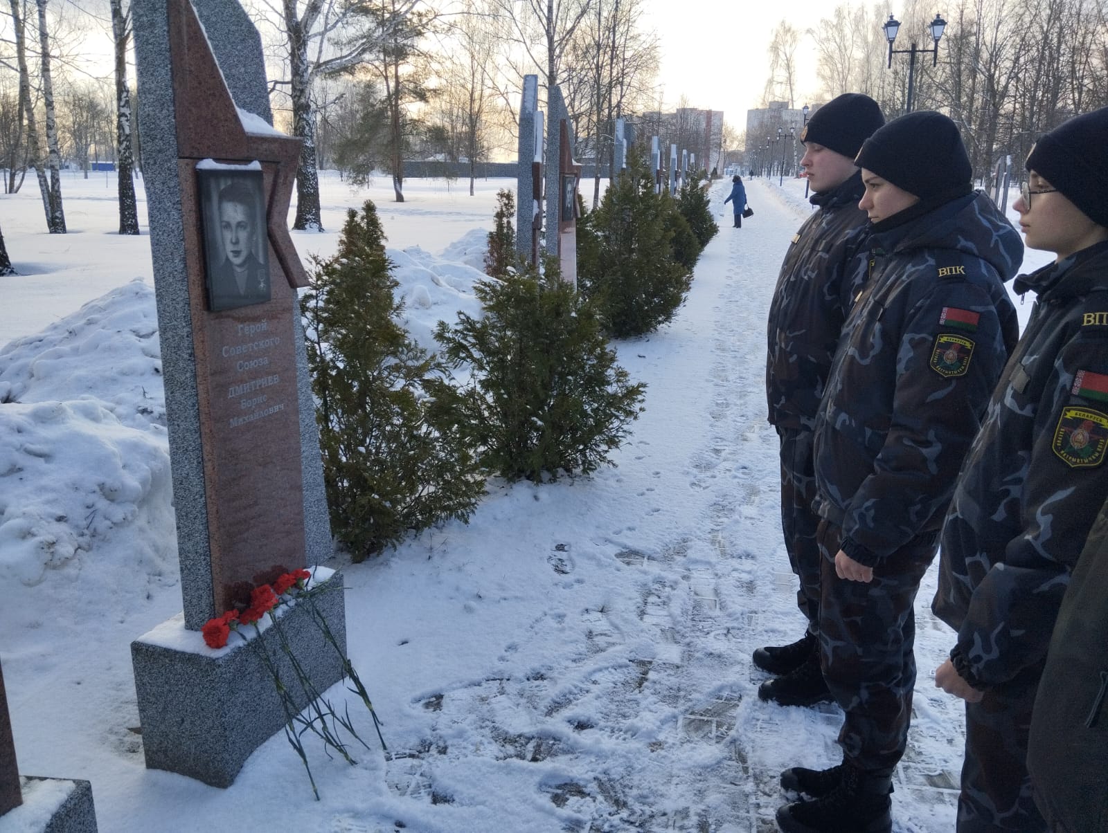 В Республике Беларусь учащиеся государственного учреждения образования ‘Средняя школа №1 г. Осиповичи имени Б.М. Дмитриева’ и воспитанники военно-патриотического клуба ‘Волат’ при Осиповичском РОВД поклонились памяти Бориса Михайловича Дмитриева, чьё имя с гордостью носит школа.