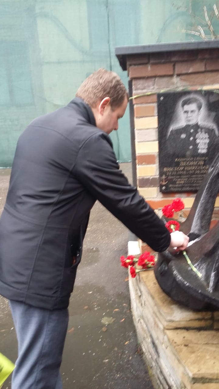 На малой Родине Виктора Леонова коллеги возложили цветы к памятным доскам: в школе, где он учился и к дому, где проживал.