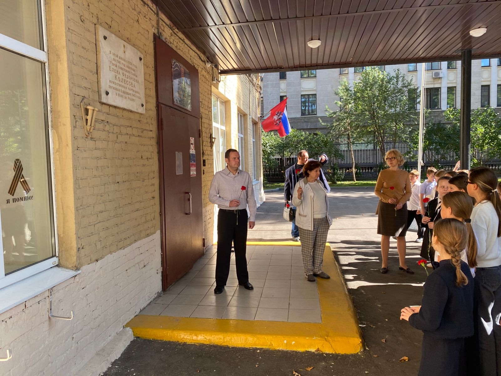 С учителями и школьниками, в годовщину гибели Героя Советского Союза Елены Фёдоровны Колесовой, почтили её память в московской Школе № 1231, где также прошёл урок Мужества.