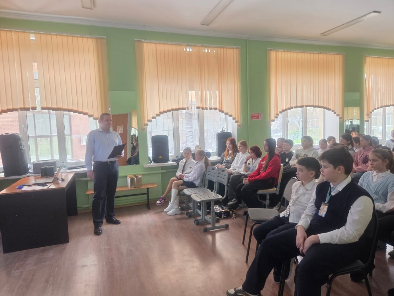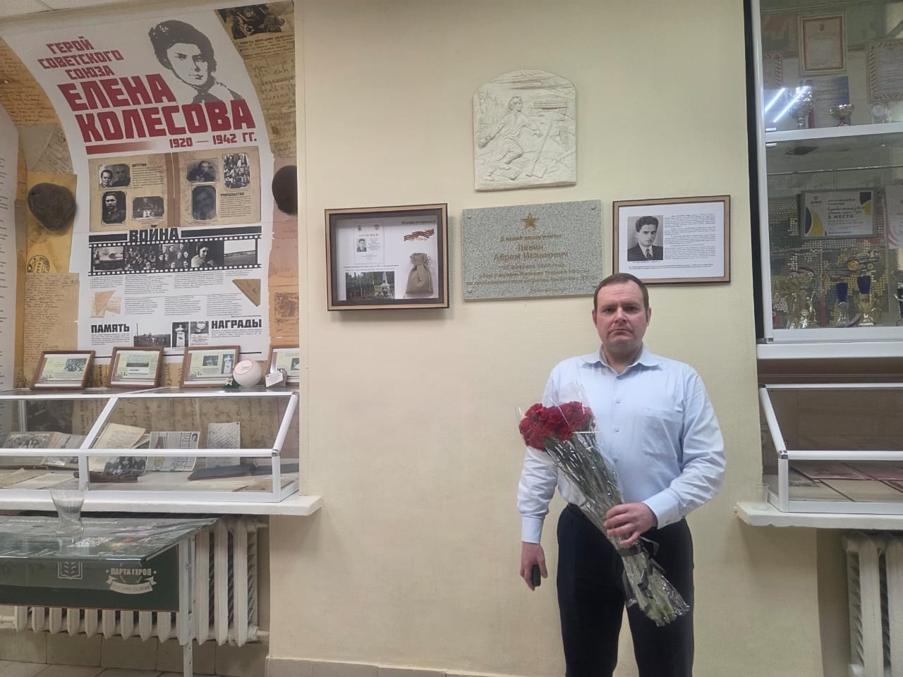 Для школьников был проведён урок Мужества, участники церемонии почтили память Героя минутой молчания и возложили цветы к мемориальной доске.