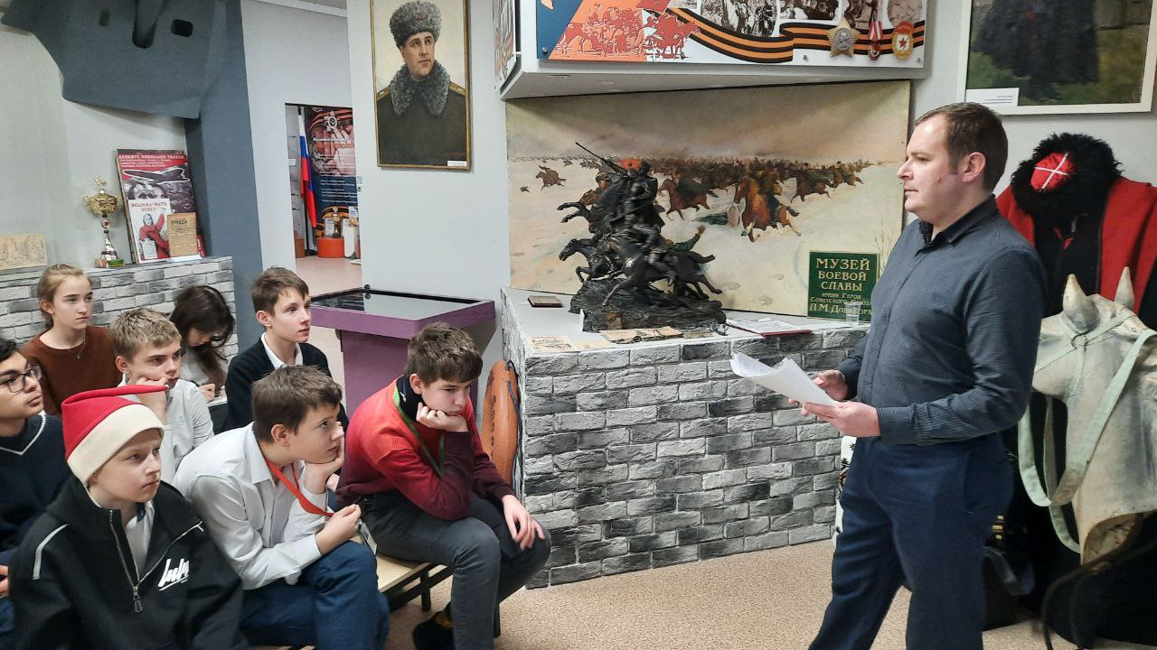 В подразделении школы на Октябрьском переулке обучающиеся седьмого класса узнали о сражениях на псковской земле и боевом пути Героя Советского Союза Александра Матросова.