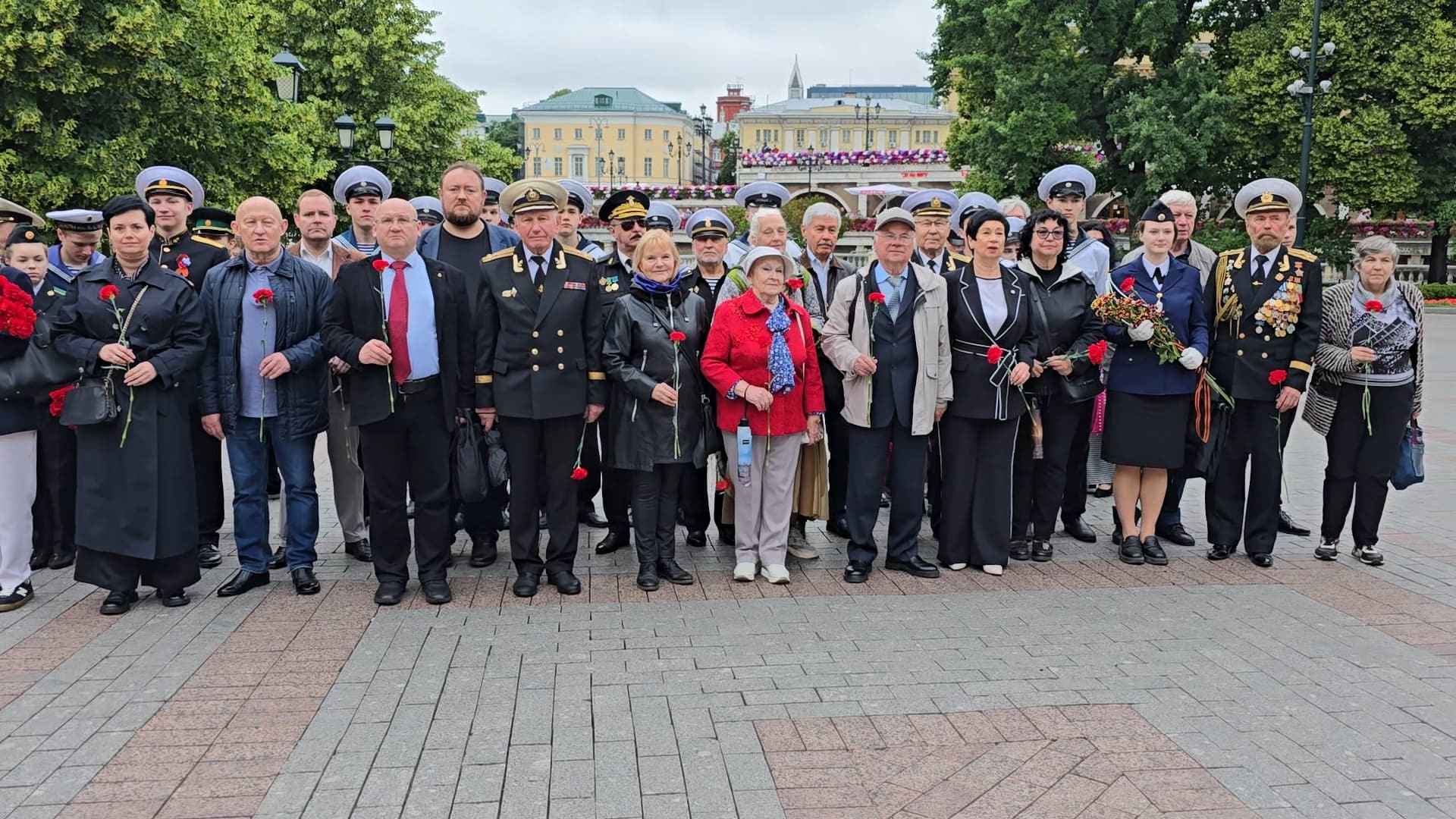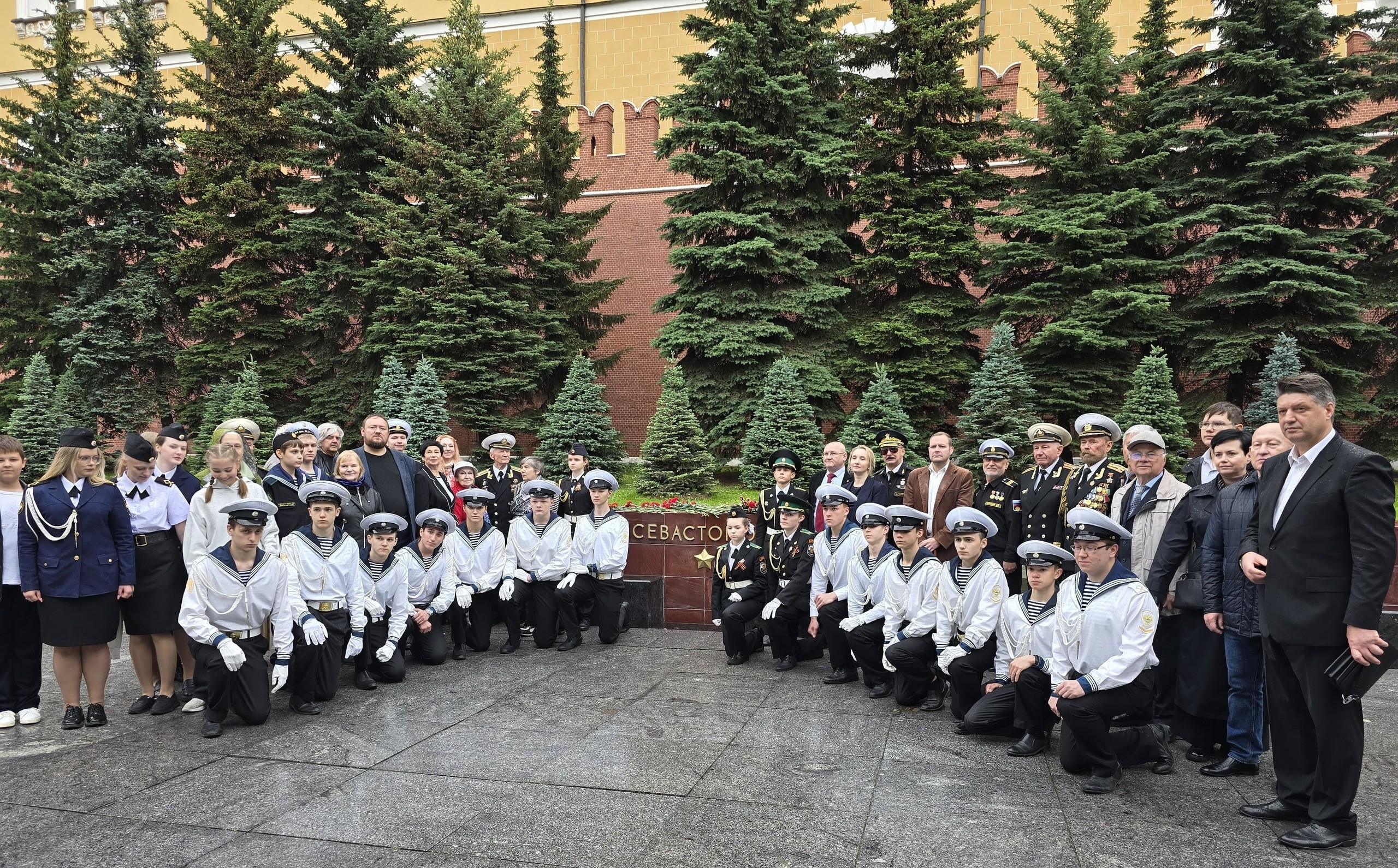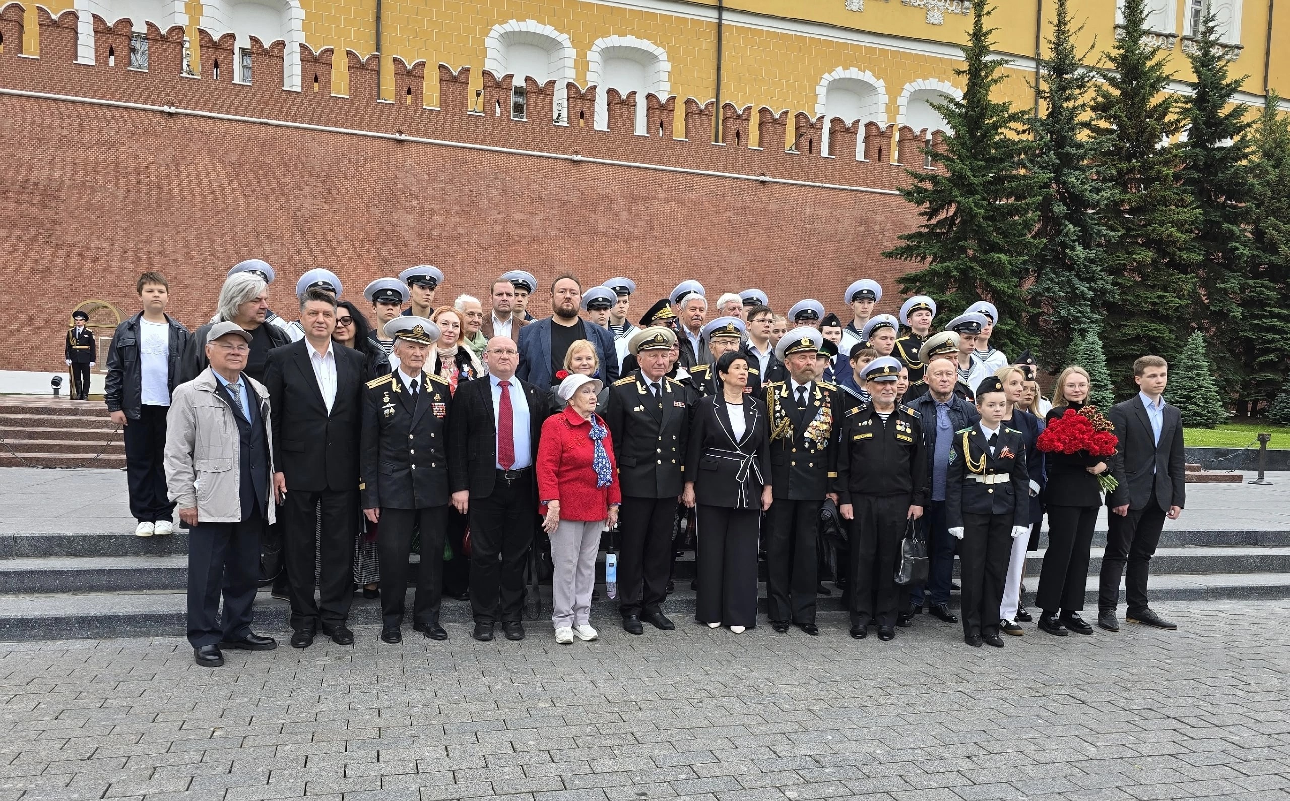 Представители РОО ‘Севастопольское Землячество’, РОО ‘Совета ветеранов войны и военной службы Черноморского флота’, Объединенного совета ветеранов ВМФ Московского комитета ветеранов войны, Комиссии Совета по делам национальностей Правительства Москвы, МОПД ‘ВЕЧНО ЖИВЫЕ’, Фонда ‘Легендарный Подвиг’, курсанты Колледжа Академии водного транспорта им. министра речного флота Л.В. Багрова, члены военно-патриотического объединения ‘Альфа’ им. Г.Н. Сергеева ГБОУ Кадетской Школы № 1784 и актив Музея истории развития морской авиации ГБОУ ‘Школа № 1383’ возложили цветы к Могиле Неизвестного Солдата и к стеле с землёй из города-героя Севастополя в Александровском саду.