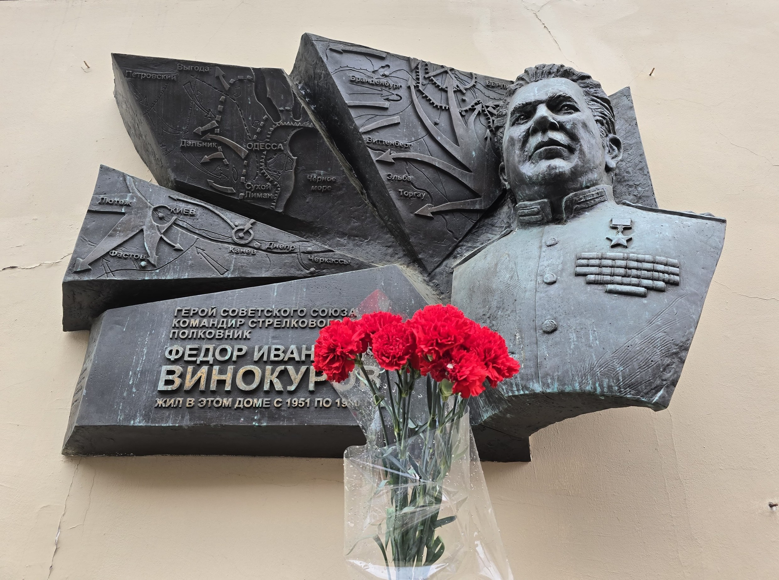 Герой Советского Союза, полковник Ф. Винокуров родился 21 июня 1909 года в селе Лутовиново ныне Белгородской области. Окончил Горьковское военно-политическое училище. С начала Великой Отечественной войны в действующей армии. Был военным комиссаром дивизии, заместителем командира стрелковой бригады, командиром стрелкового полка. Воевал на Крымском, Северо-Кавказском, Воронежском, Белорусском, 1-м Белорусском, 3-м и 1-м Прибалтийских фронтах. Участник встречи на Эльбе с союзными войсками в апреле 1945 года. Будучи командиром 117-го стрелкового полка 23-й стрелковой дивизии подполковник Винокуров отличился в Висло-Одерской операции. Умело руководил боем полка при прорыве глубокоэшелонированной обороны противника на Магнушевском плацдарме, личным примером вдохновляя бойцов. В ночь на 3 февраля 1945 года полк овладел укреплённым пунктом в польском городе Шлоппе. Указом Президиума Верховного Совета СССР от 27 февраля 1945 года за образцовое выполнение боевых заданий командования на фронте борьбы с немецко-фашистскими захватчиками и проявленные при этом мужество и героизм подполковник Винокуров удостоен звания Героя Советского Союза с вручением ордена Ленина.