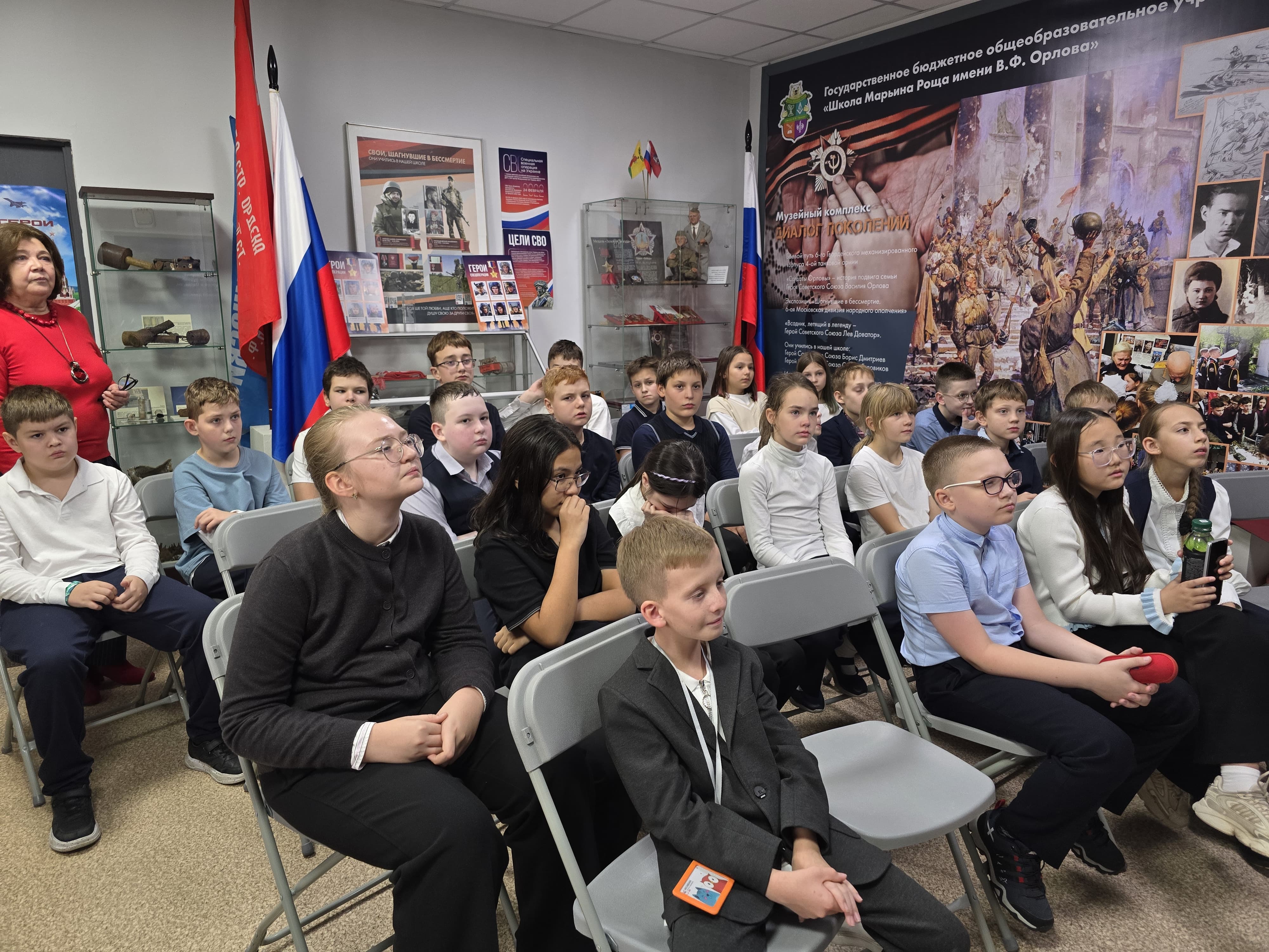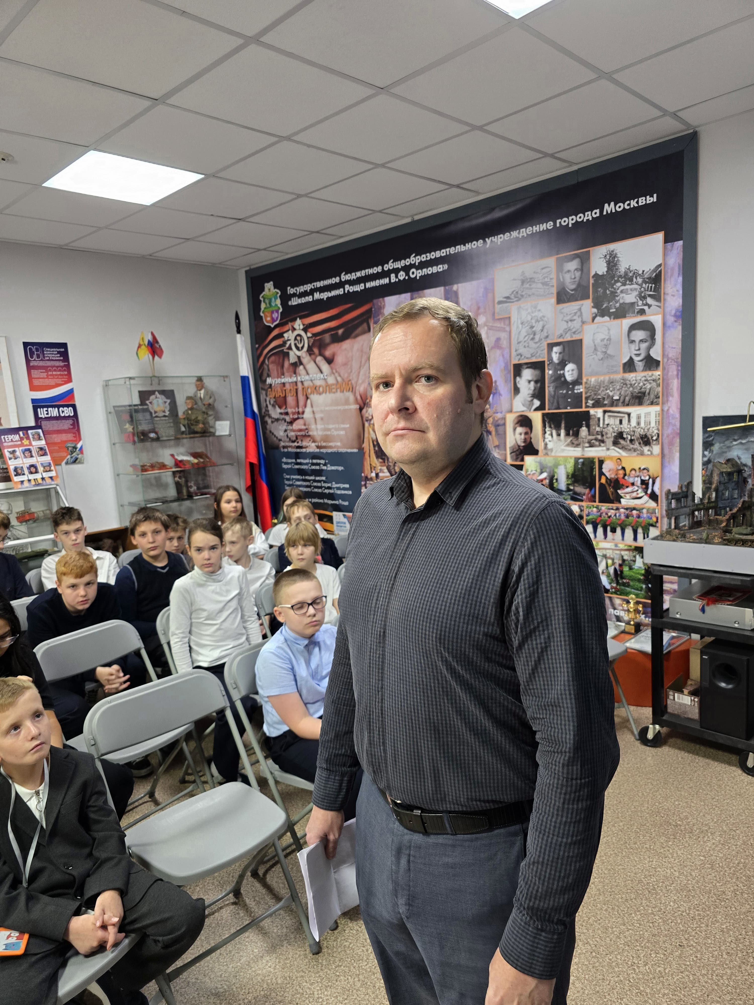 Представители Фонда ‘Легендарный Подвиг’ и МОПД ‘ВЕЧНО ЖИВЫЕ’ Алексей Царёв и Дмитрий Пахомов рассказали обучающимся 5 класса о героях подвига самопожертвования и Битве за Москву.